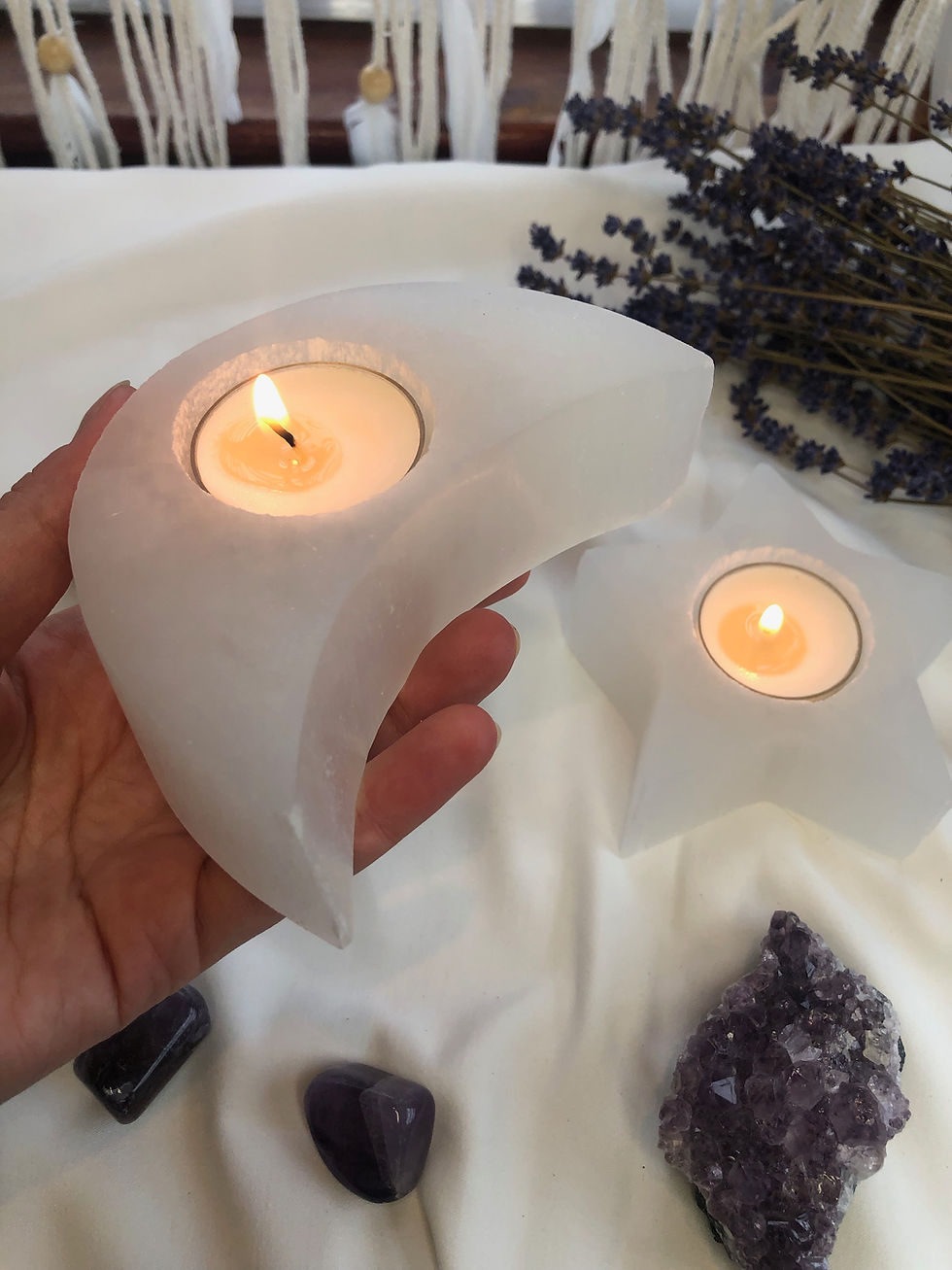 Moon & Star Selenite Candle Holder